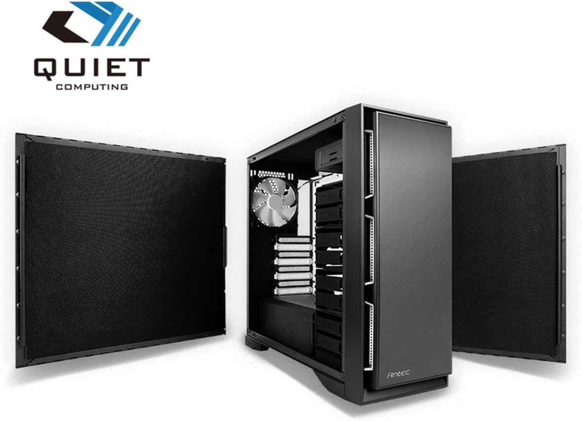 - Silent Mid-tower ATX PC case with sound dampening top/front/side panels and quiet computing technology.