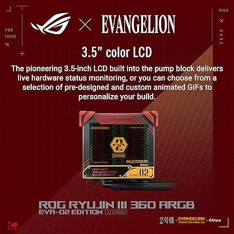 ASUS ROG Ryujin III 360 ARGB EVA-02 Edition, 3X 120mm ARGB Fans, OLCD Display