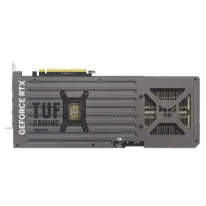 Cooling is engineered around triple Axial-tech fans and an ASUS MaxContact heat spreader approach, designed to maximize thermal transfer from the GPU into the heatsink for lower operating temperatures under load. A premium phase-change GPU thermal pad helps fill micro-gaps during operation to improve thermal conductivity and support long-term performance stability. The fans include 0dB technology, stopping under light workloads for quieter desktop use, and ramping intelligently when temperatures rise for balanced acoustics during gaming. TUF durability features include military-grade components, a protective PCB coating to help resist moisture and debris-related issues, and a vented metal exoskeleton with an aluminum backplate to reduce PCB flex. Dual BIOS lets you switch between Quiet and Performance modes to prioritize acoustics or maximum cooling response.