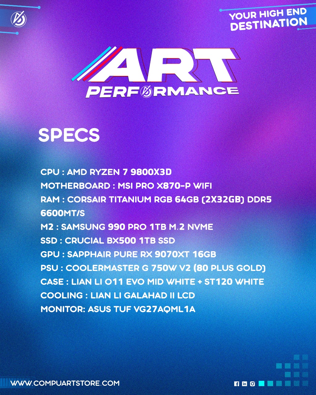 CPU : AMD RYZEN 7 9800X3D
