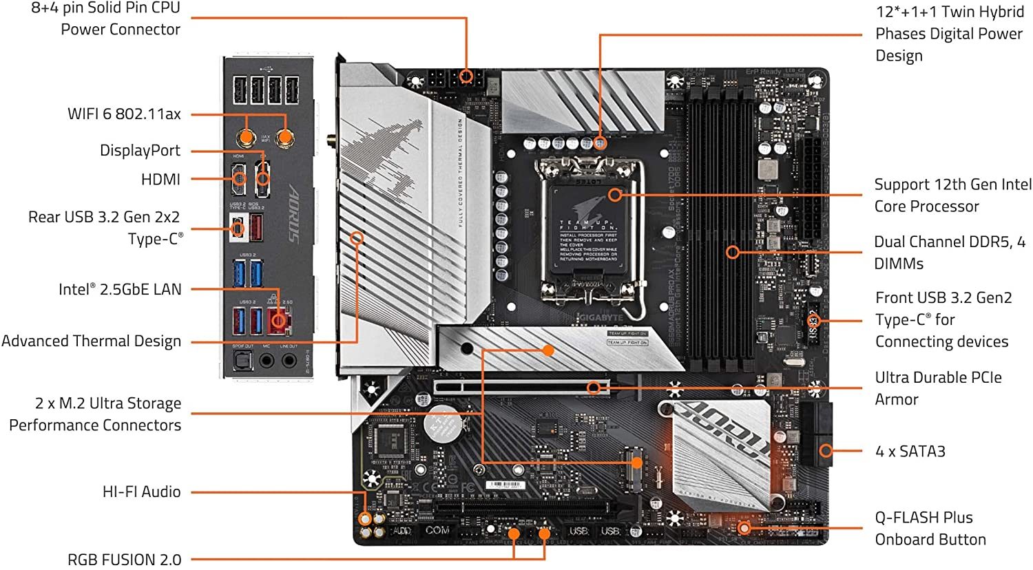 GIGABYTE B660M AORUS PRO AX DDR4 (B660/ Intel/LGA/1700/ Micro-ATX/DDR4/ Dual M.2/ PCIe 4.0/ USB 3.2 Gen2 Type-C/WiFi 6 802.11ax/ Intel 2.5GbE LAN/Motherboard)
