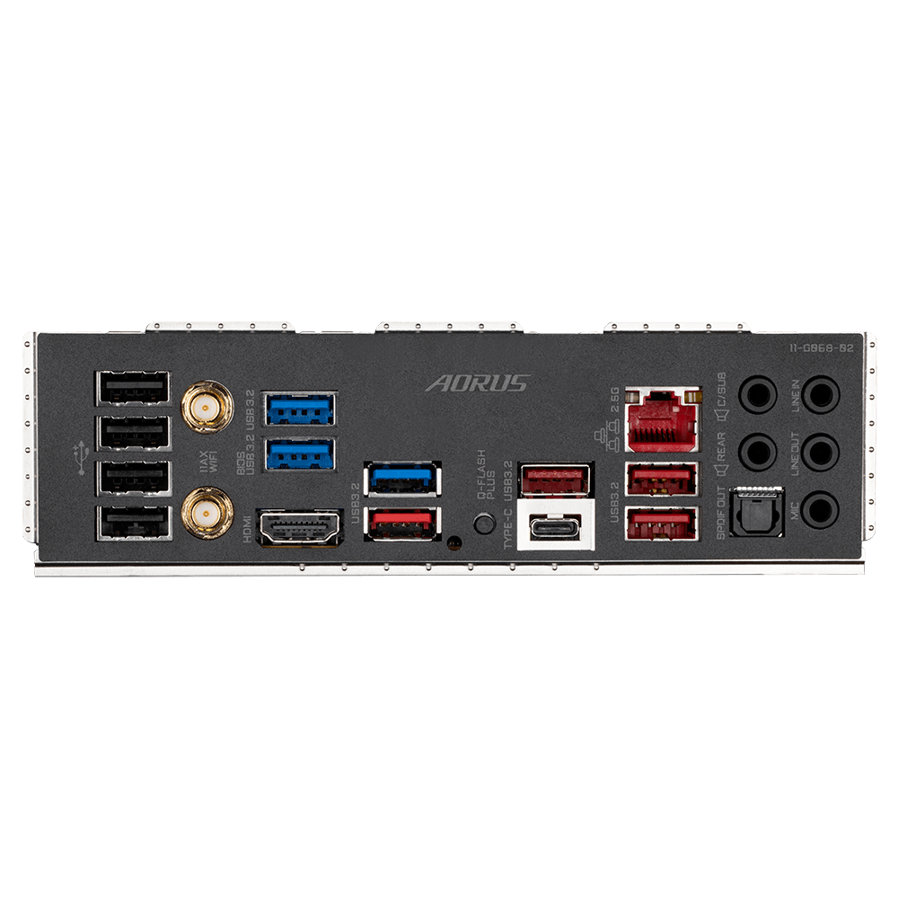 1 Intel® WiFi 6 802.11ax 2T2R & BT 5 with AORUS Antenna2 HDMI3 Q-Flash Plus Button4 Rear USB 3.2 Gen2x2 Type-C®5 Intel® 2.5GbE LAN6 Advanced Thermal DesignFins-Array IIDirect-Touch Heatpipe II9 W/mK Thermal Conductivity Pad2x Copper PCB7 3* M.2 ConnectorsNVMe PCIe…