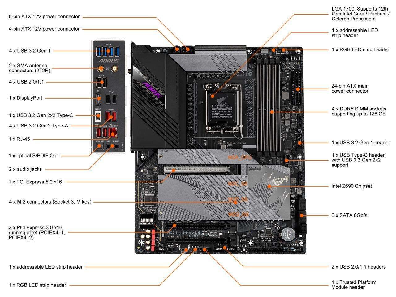 GIGABYTE Z690 AORUS PRO LGA 1700 Intel Z690 ATX Motherboard with DDR5, Quad M.2, PCIe 5.0, USB 3.2 Gen2X2 Type-C, WiFi 6, 2.5GbE LAN