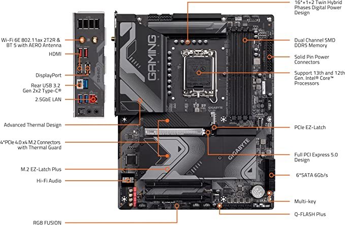 - Intel LGA 1700 Socket: Supports 13th and 12th Gen Intel Core Series Processors