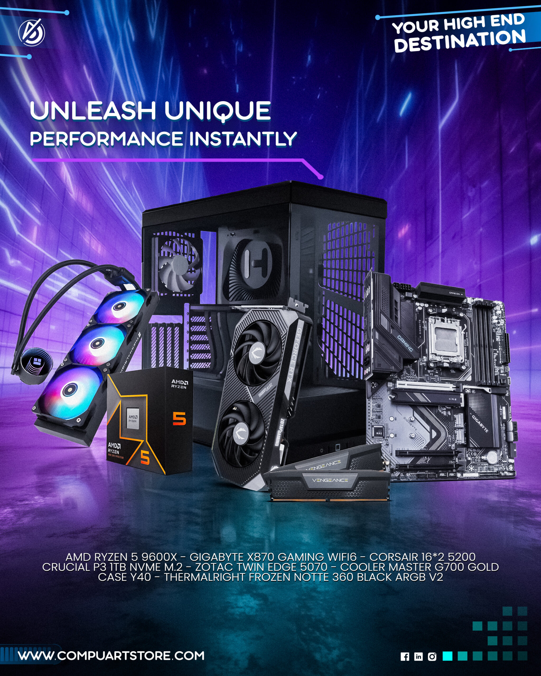 CPU : AMD Ryzen 5 9600X MotherBoard : Gigabyte X870 GAMING WIFI6 Ram : CORSAIR VENGEANCE 32GB (2x16GB) 5200MHzDDR5 M2 : Crucial P3 1Tb Nvme M.2 Gpu : Zotac RTX 5070 Twin Edge  PSU : Cooler Master G700 80+ Gold…