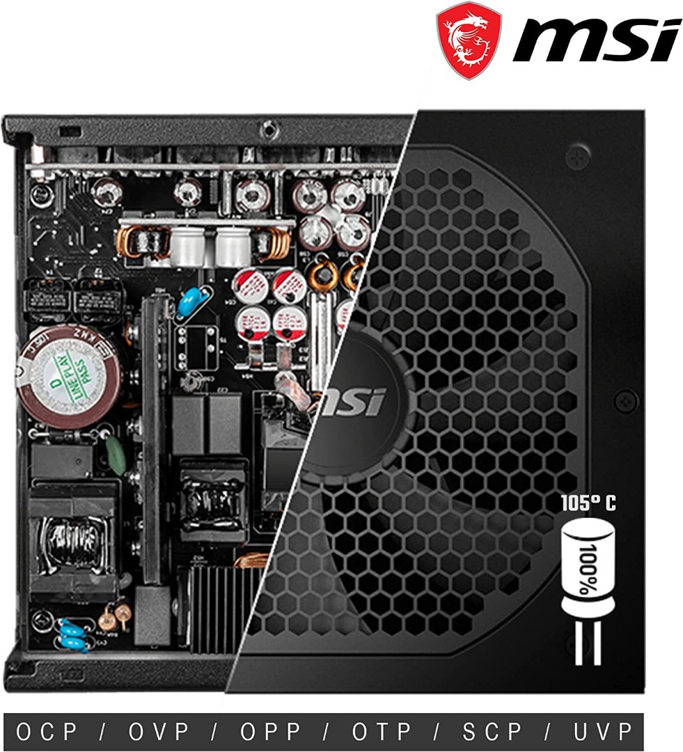 MSI MPG A750GF EU Plug PSU 750 W, 80 Plus Gold Certified, Fully Modular, 100% Japanese Capacitor, Flat Cables, ATX Power Supply Unit, EU Powercord, Black